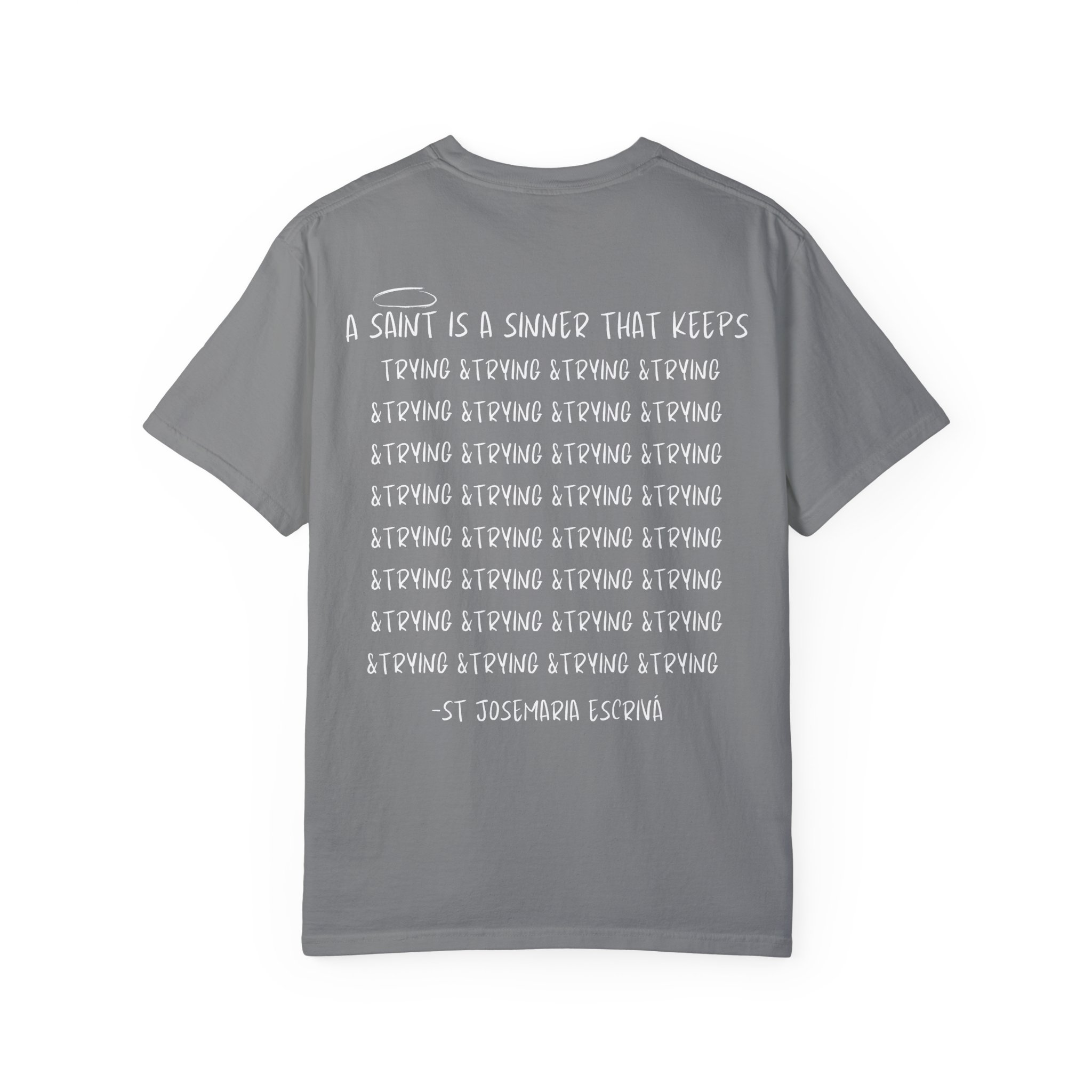 The “A Saint is a Sinner” T-shirt is inspired by a powerful quote from St. Josemaria Escriva: “A saint is a sinner who keeps trying.” This message emphasizes that perfection is a journey of practice and perseverance, encouraging us to never give up. Not only does this shirt feature an amazing design, but it’s also incredibly comfortable and itch-free, making it perfect for everything from meetings to relaxing at home.