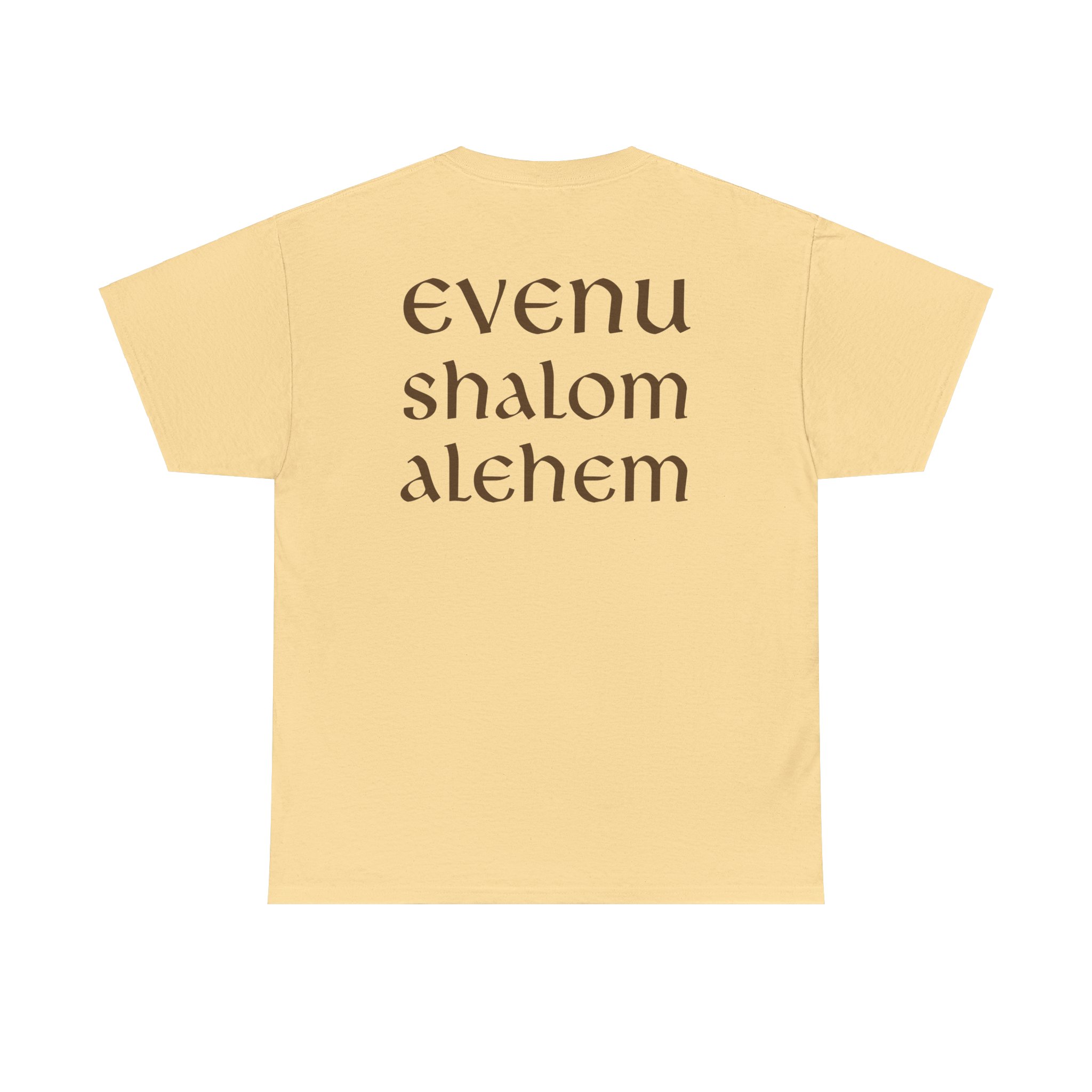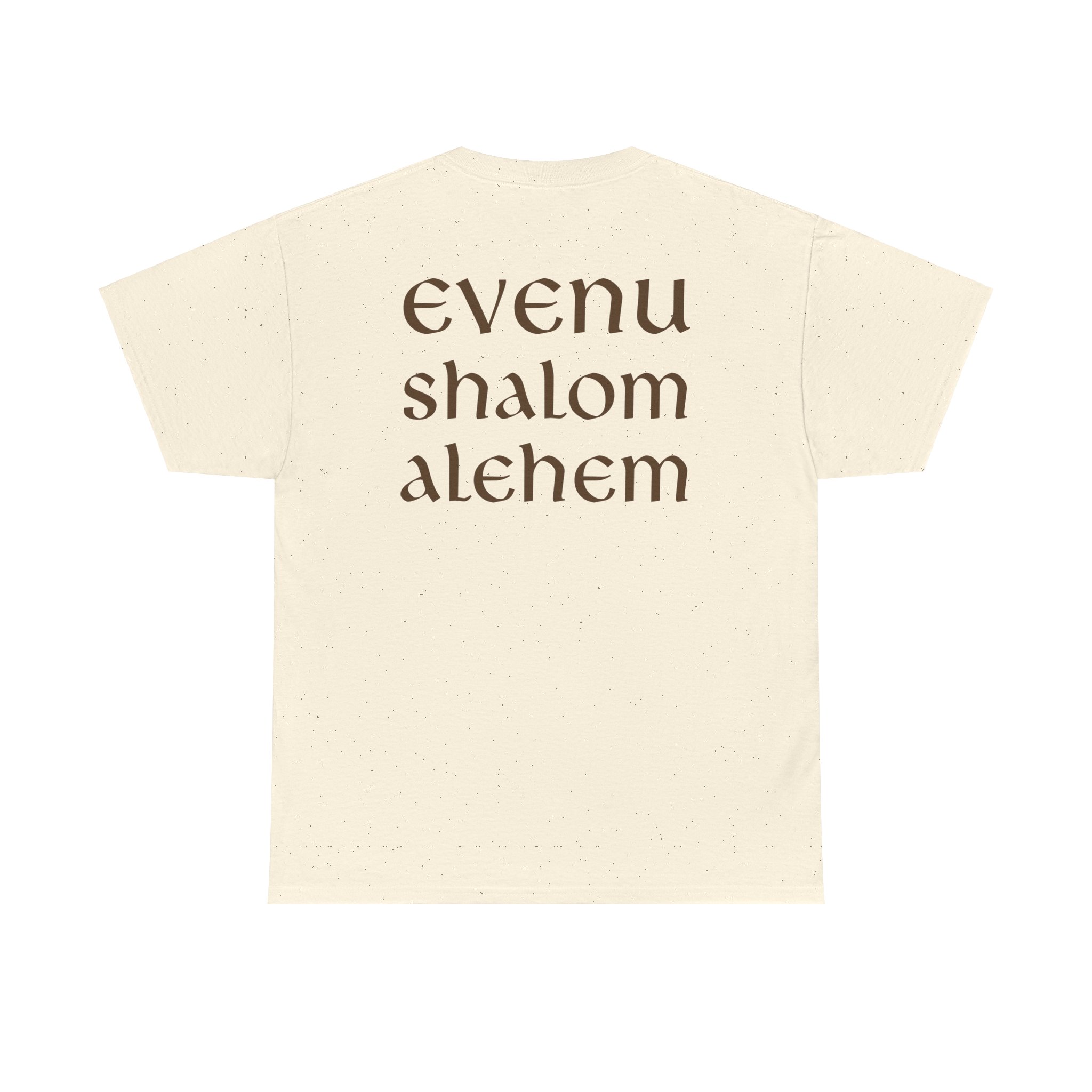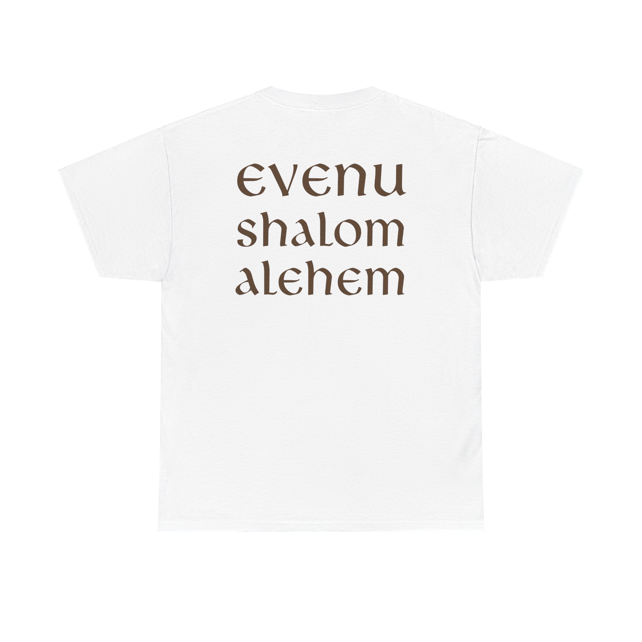The shirt “Evenu Shalom Alechem” translates to “We bring peace upon you” in Hebrew. This t-shirt serves as a reminder to spread peace to others, because in doing so, we also find peace within ourselves. Not only is this shirt a meaningful expression of goodwill, but it’s also incredibly comfortable. The relaxed fit provides a laid-back silhouette, perfect for casual outings or lounging at home. With a variety of soothing colors to choose from, it’s a versatile addition to any wardrobe, blending style with a powerful message of peace.