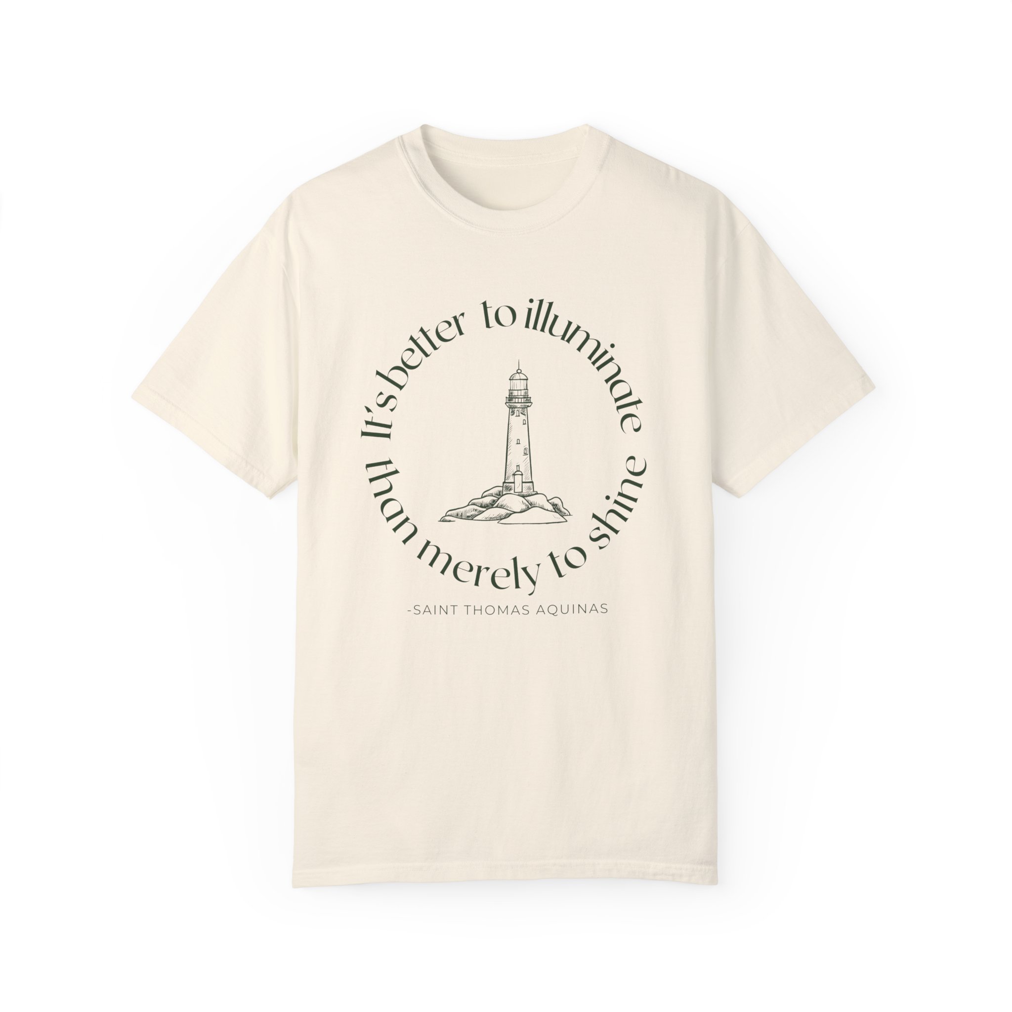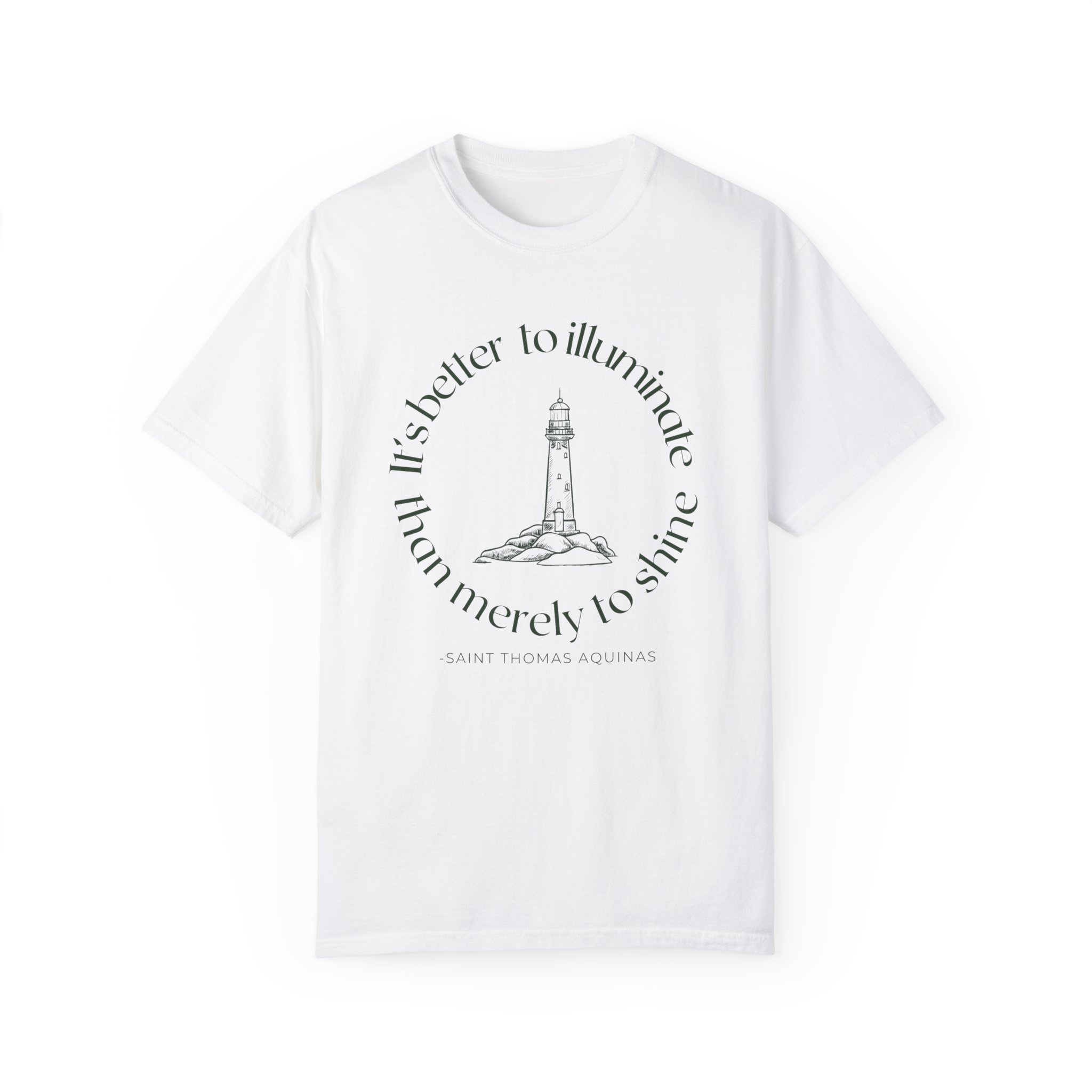 The “It’s Better to Illuminate” shirt is inspired by a quote from St. Thomas Aquinas: “It’s better to illuminate than merely to shine.” This shirt reminds us that it’s not enough to simply be christians; we are called to help others and bring light to the darkness. The design features a lighthouse, symbolizing guidance and light. Not only is this shirt symbolic, but it’s also versatile and comfortable, soft to the touch, and perfect for everyday wear.