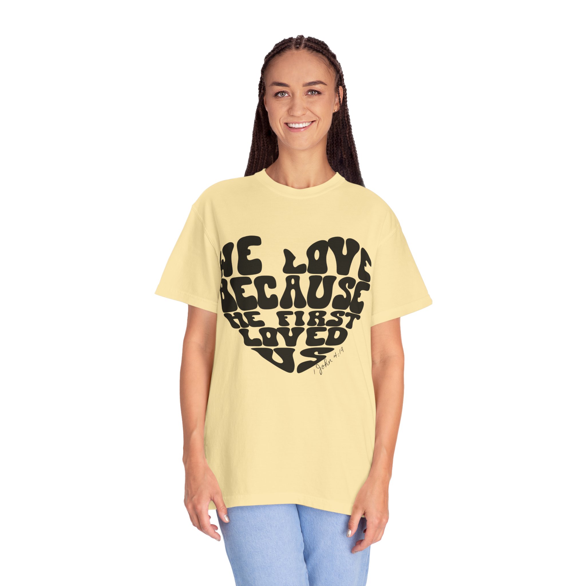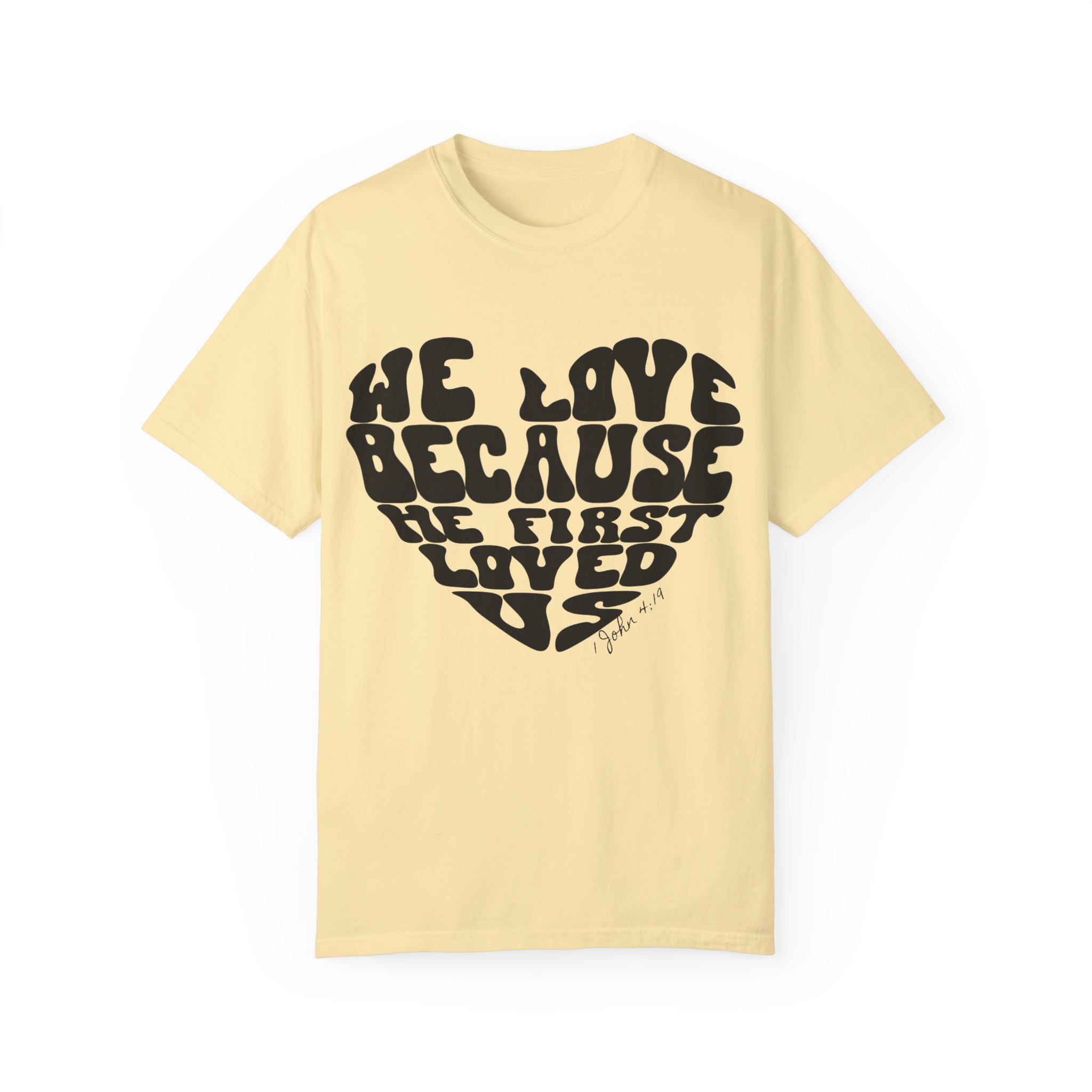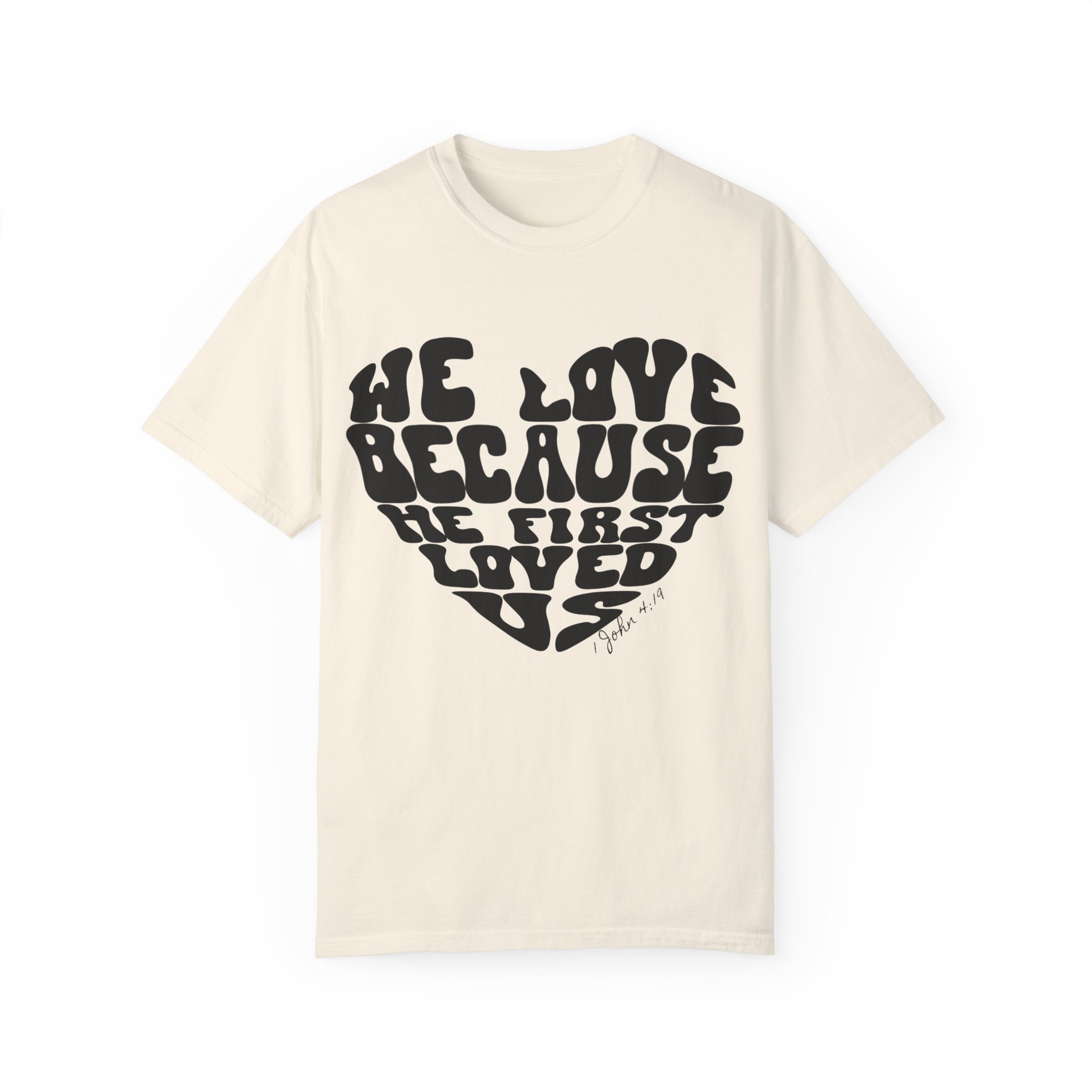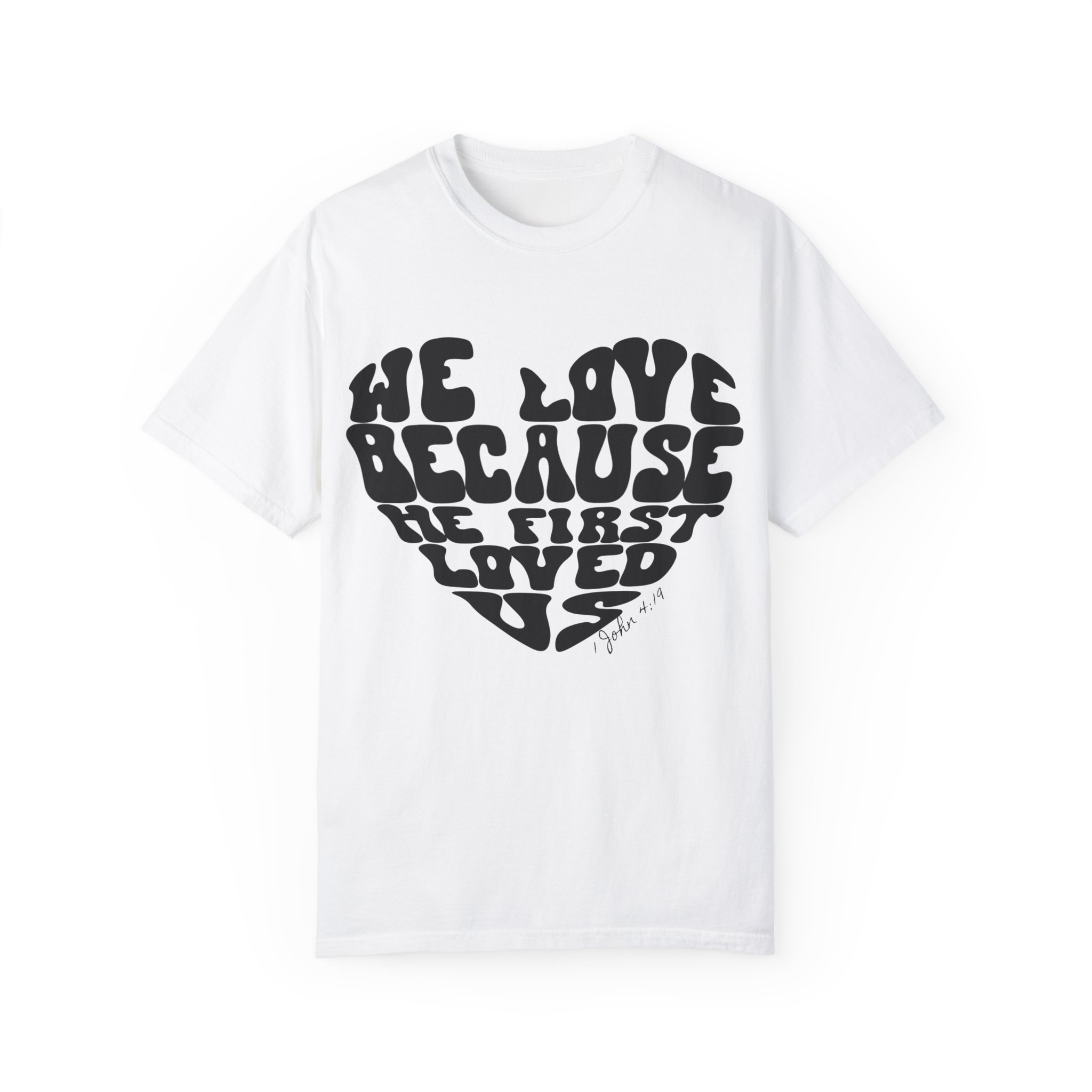 The “We Love” shirt is inspired by the Bible verse, “We love because He first loved us” (1 John 4:19). It serves as a reminder that our love is not based on obligation or law, but on the gratitude we feel for Jesus’ love—demonstrated when He died for us on the cross. Not only is this shirt a meaningful expression of faith, but it’s also designed for comfort and is itch-free. It’s the perfect choice for relaxing at home or attending semi-formal meetings.